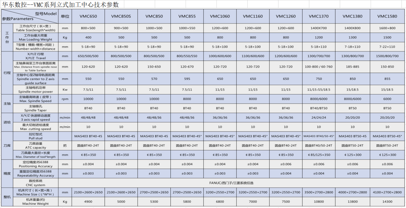 VMC系列立式加工中心在继承传统立式数控铣床基础框架刚性强、结构对称、稳定性强等优点的基础上,引进国际先进的动态刚性设计理念,优化设计了移动部件。机床采用三维计算机辅助设计和有限元分析开发出来的高精度、高速度、高刚度的新一代立式加工中心,导轨采用三线轨(或两线一硬)导轨,快速移动速度最大可以达到48m/min,主轴转速6000至15000转/分可选定位精度<4μm,重复定位<3μm;适用于模具、军工、五金、汽车零部件等各种机械加工领域的需求。