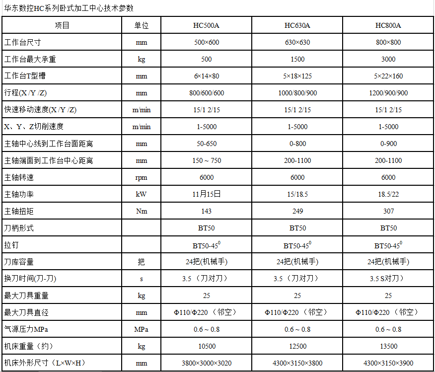 HC系列该机床的底座、立柱、滑座、主轴箱均为优质铸铁HT300制作。主要基础大件断面设计密筋布置,并采用有限元分析,保证高的抗弯、抗扭刚度,使其具有高的固有频率,提高抗振性,三轴硬轨(淬火)满足技术性能对大吃刀量和高精度的要求。并经二次时效处理,消除内应力。具有整体刚性好,吸振抗震性能好等特点。广泛应用于军工、汽车、模具、机械制造等行业的箱体零件、壳体零件、盘形零件的加工。零件经过一次装夹后可完成铣、镗、钻、扩、铰、攻丝等多工序加工,具有高精度、高自动化、高可靠、机电一体化程度高、操作简单、整体造型美观大方等特点。