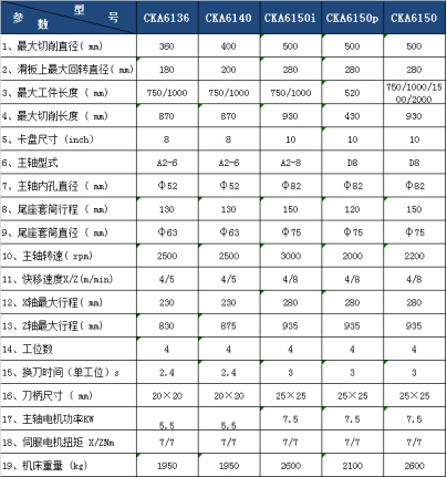 CK系列数控车床为纵(Z)、横(X)两座标控制的数控卧式车床。CK系列数控车床根据配置及承重等指标分为:CKA系列、CKD系列、CKA-M大型系列、CKA-H大型系列。平床身数控车能够对各种轴类和盘类零件自动完成内外圆柱面、圆锥面、圆弧面、端面、切槽、倒角等工序的切削加工,并能车削公制直螺纹、端面螺纹及英制直螺纹和锥螺纹等各种车削加工。适合于多品种,中小批量产品的生产,对复杂、高精度零件尤能显示优越性。